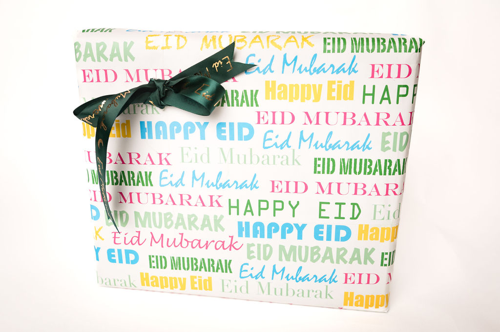 High Quality Rolled Wrapping paper is our signature ‘Eid greetings’ print with fonts in different colours, this Eid give your loved one presents wrapped in our signature gift wrap, comes with matching Eid tag and other related products.
