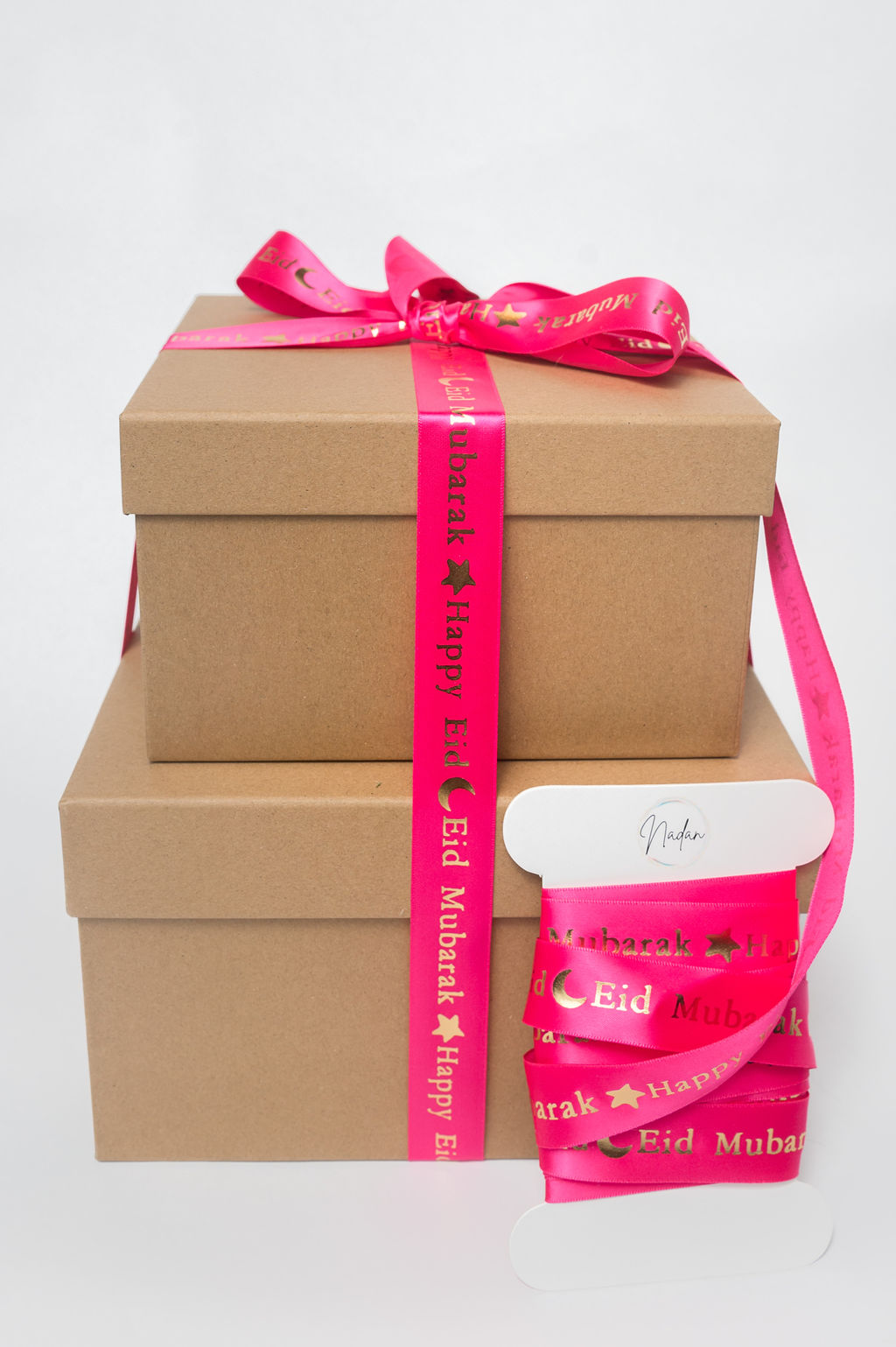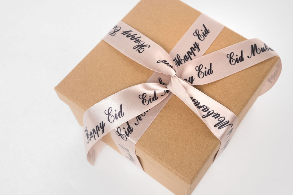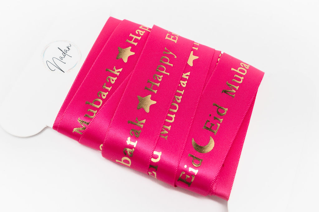 A Soft weave and glossy satin ribbon will bring charm to your box/presents comes in neutral and bright colours with gold and black font.