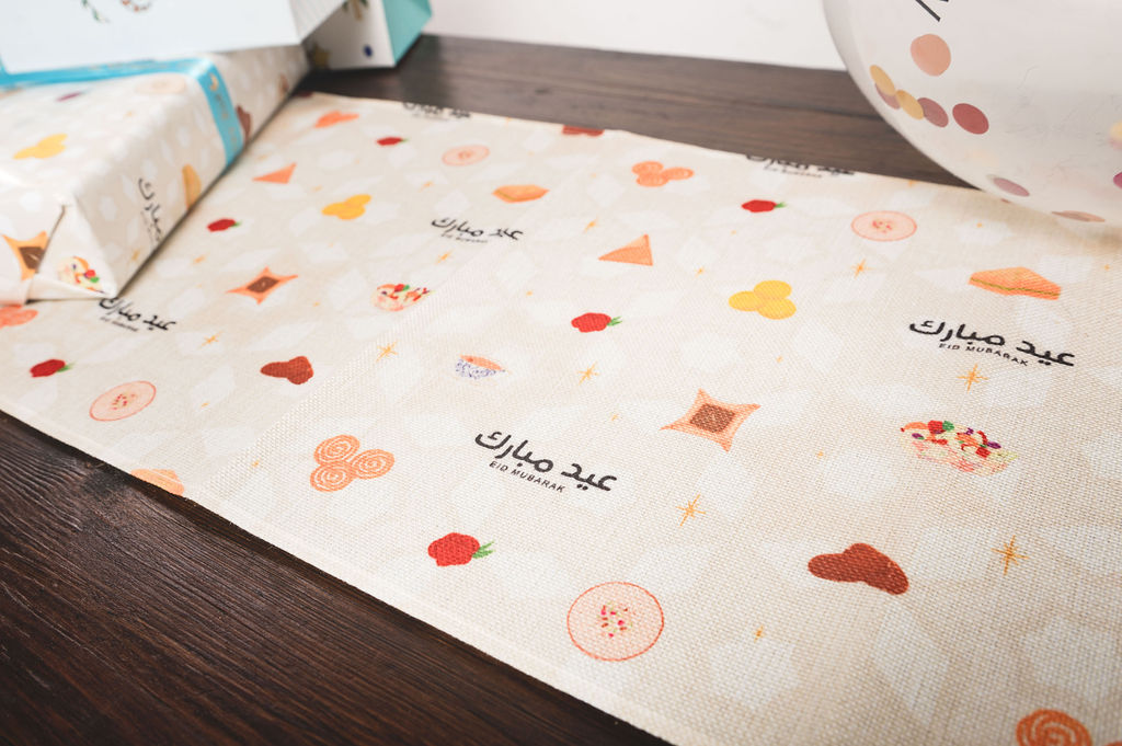 This 'Eid Treat' design in printed beautifully on a burlap material and sure to make your Festive Eid table stand out.