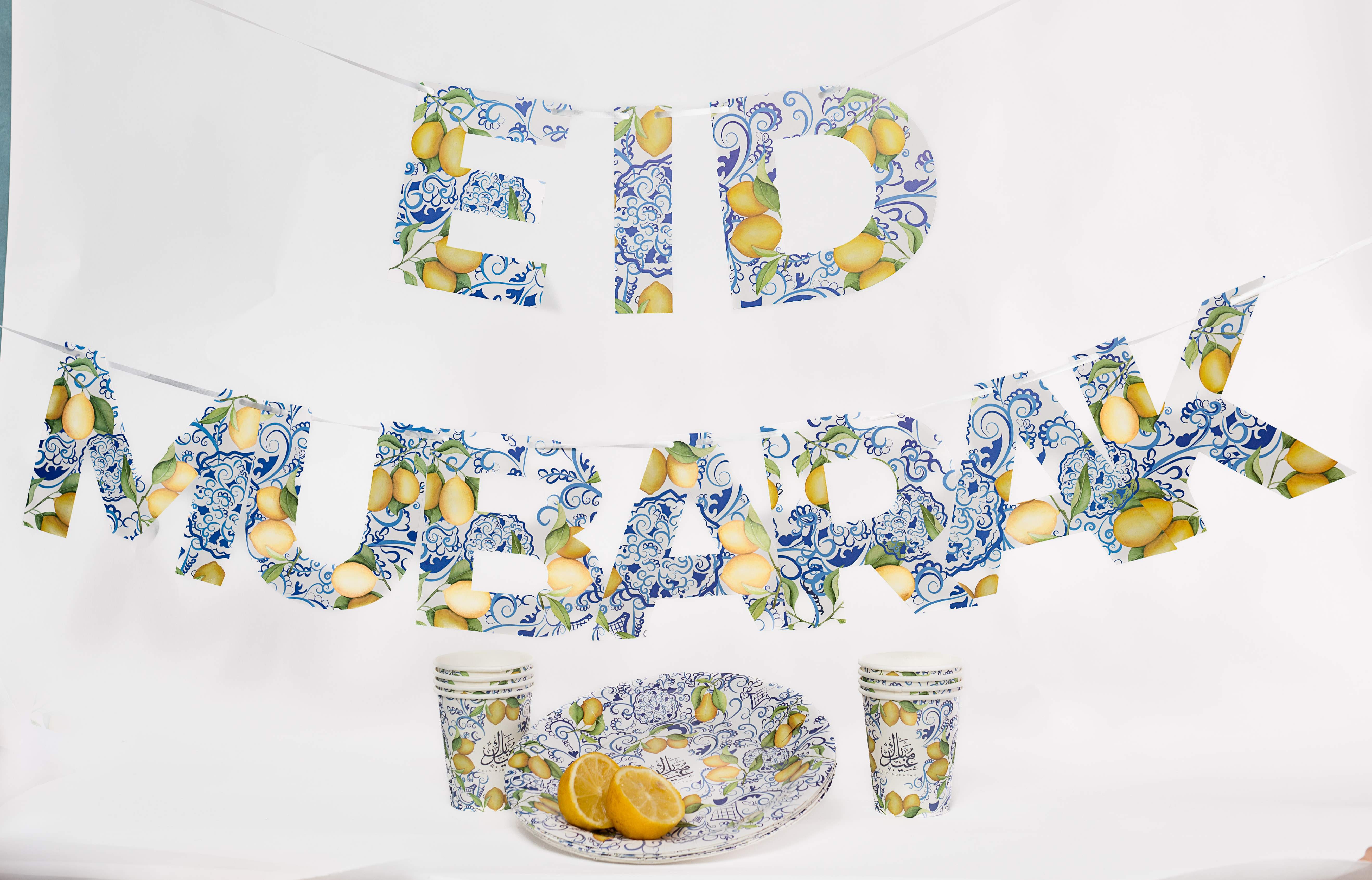 Inspired by the Amalfi lemons, this print is hand drawn in detailed.Make this theme part of your Eid this year.